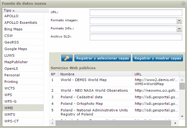 | ◆ | Conexión a Web Map Tile Service (WMTS) |